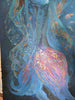 This original textured art work is enriched with metallic paint, fine glitter spray, and genuine 24 carat gold leaf. The painting shimmers and subtly picks up the light depending on the angle, with metallic pigments and gold details glowing as the viewer moves. The surface carries both depth and movement, echoing the layered currents of history and literature.